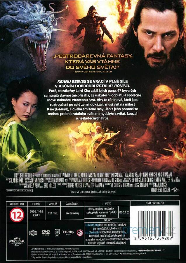 DVD film 47 róninů [2013]. Český dabing. České titulky. Dolby Digital. Hrají: Keanu Reeves. KEANU REEVES SE VRACÍ V PLNÉ SÍLE V AKČNÍM DOBRODRUŽSTVÍ 47 RÓNINŮ.