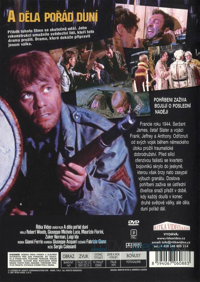 DVD film A děla pořád duní [1974]. Český dabing. České titulky. Dolby Digital. Pět vojáků pohřbených zaživa v jeskyni. Skutečný příběh o přežití uprostřed válečného pekla 1944.