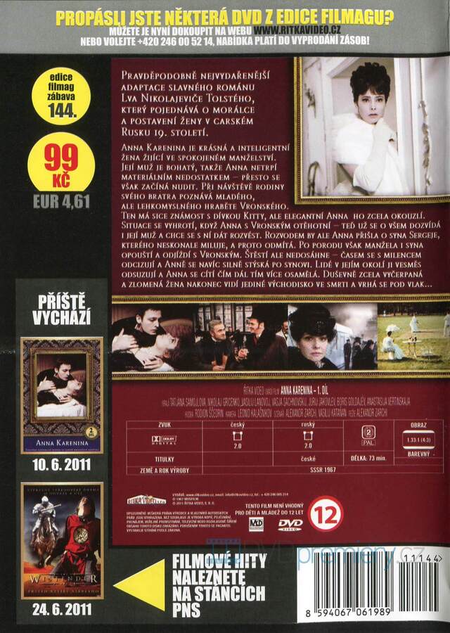 DVD film Anna Karenina 1. díl [1967]. Český dabing. České titulky. Dolby Digital. Nejlepší filmová adaptace Tolstého románu o ženě v carském Rusku 19. století.