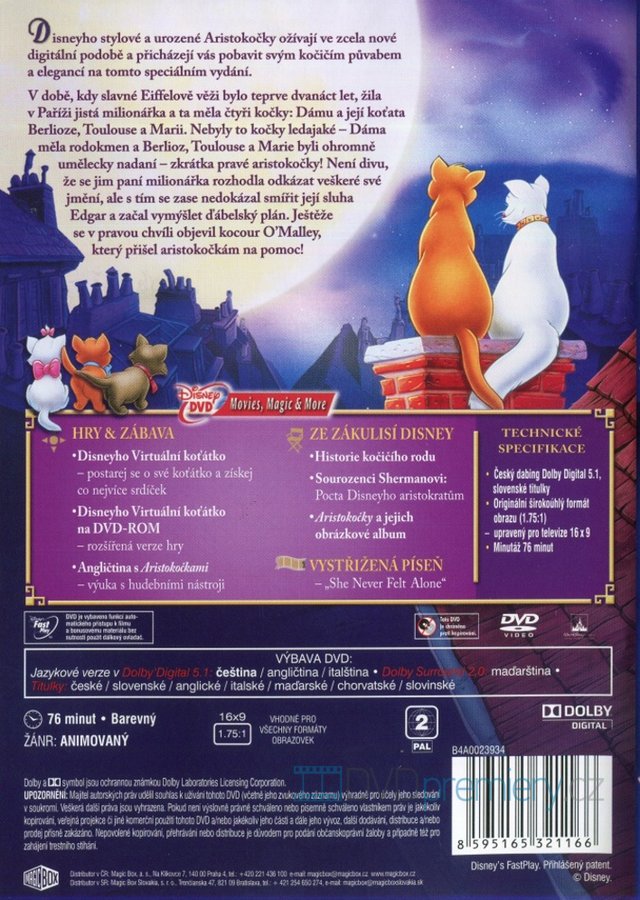 DVD film Aristokočky disney [1970]. Edice Disney klasické pohádky. Český dabing. České titulky. Dolby Digital. Jazzová klasika Walta Disneye.