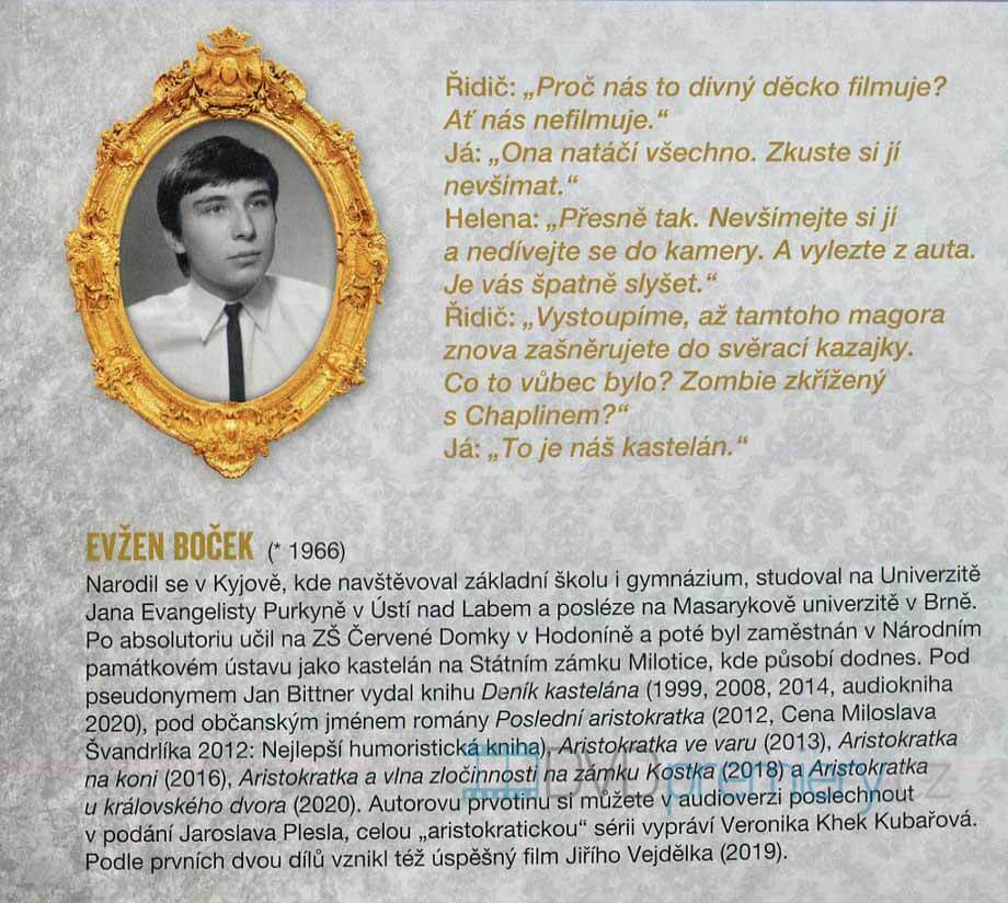 Audioknihu Aristokratka pod palbou lásky napsal autor: Evžen Boček, čte: Veronika Khek Kubařová. Celková stopáž: 8 hodin, 23 minut.