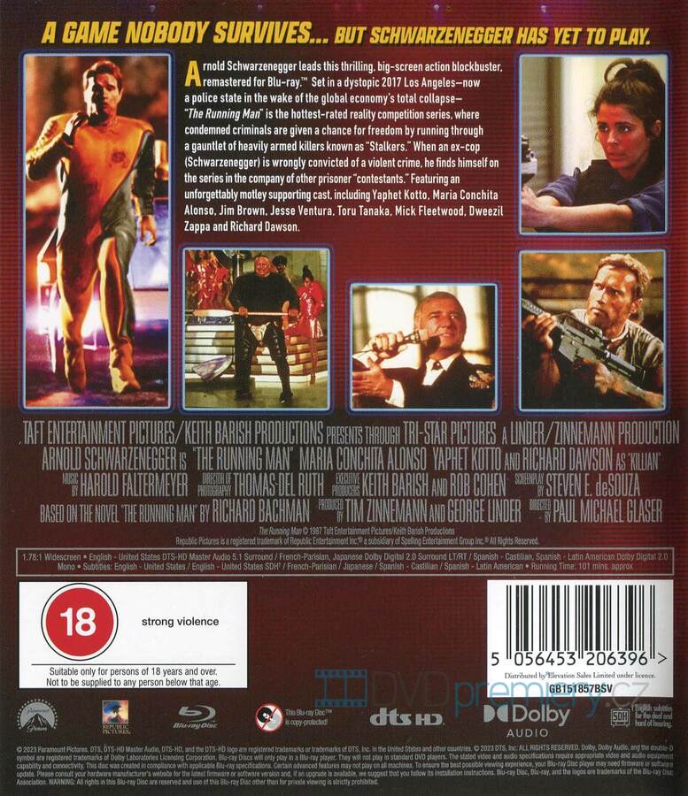 Blu-ray film Běžící muž HD [1987]. Bez CZ podpory. Dolby Digital. Dovoz. Schwarzenegger v kultovním akčním thrilleru – přežij smrtící show, nebo zemři!