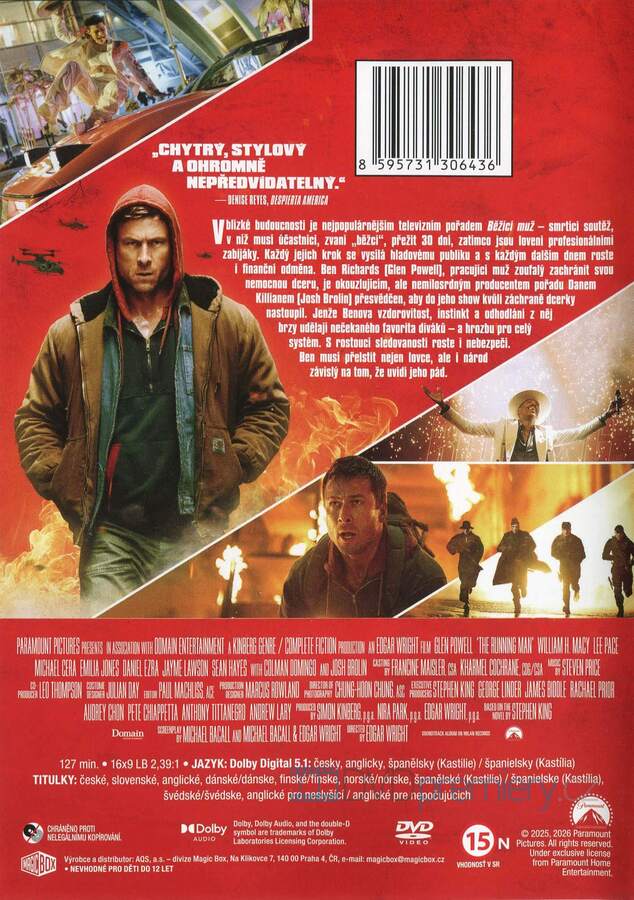 DVD film Běžící muž [2025]. Český dabing. České titulky. Dolby Digital. Reality show na život a na smrt. Přežít znamená vyhrát.