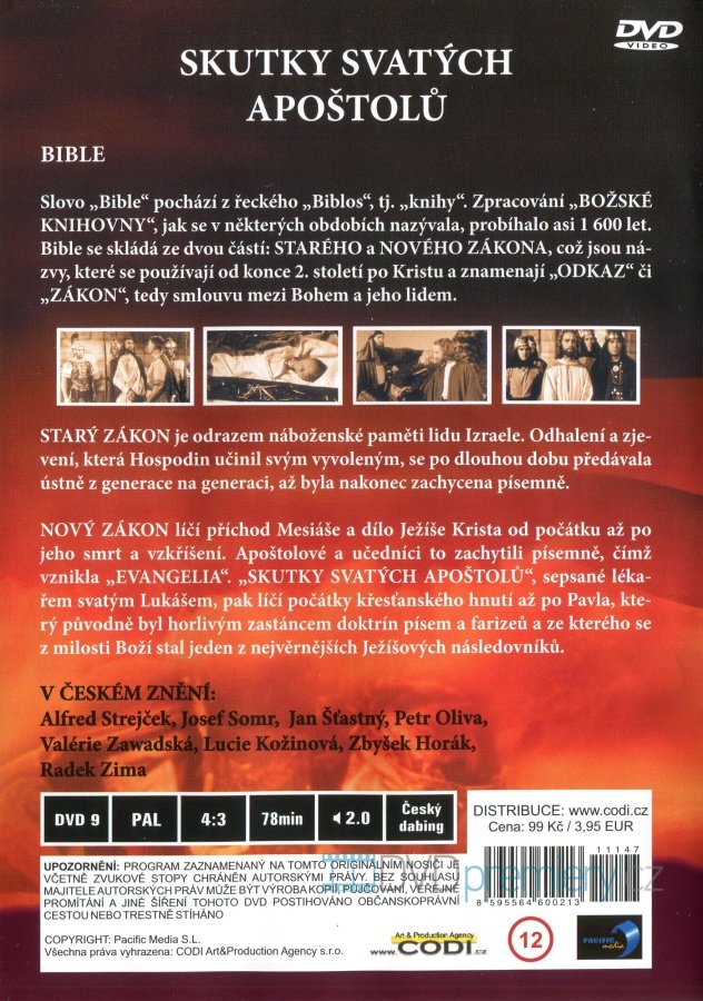 DVD obsahuje kapitoly: 1. Letnice - Petrova obhajoba v chrámu, 2. První křesťané, 3. Pavlovo obrácení, 4. Židé a pohané, Petr a Kornélius, 12. Církev v Antiochii.