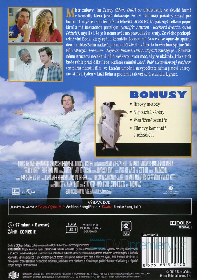 DVD film Božský Bruce [2003]. Český dabing. České titulky. Dolby Digital. Jim Carrey trochu opět ve skvělé komedii.