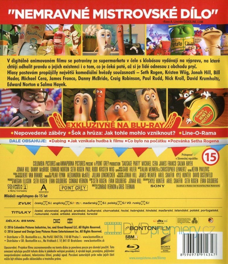 Blu-ray film Buchty a klobásy HD [2016]. Český dabing. České titulky. Dolby Digital. Potraviny ze supermarketu v čele s klobásou objevují krutou pravdu o svém osudu po opuštění obchodu v této odvážné animované komedii.