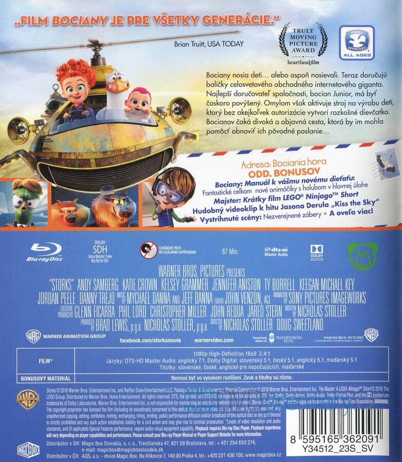 Blu-ray film Čapí dobrodružství HD [2016]. Český dabing. České titulky. Dolby Digital. Dovoz SK. Dříve se říkalo, že čápi přinášejí děti. Teď se ale říká, že doručují balíčky.