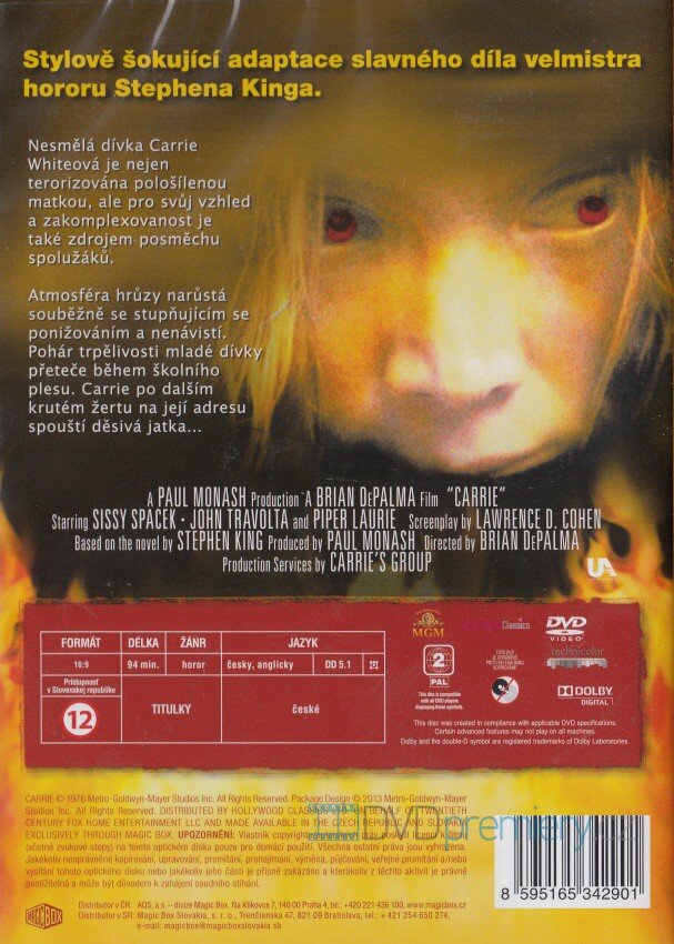 Stylově šokující adaptace slavného díla velmistra hororu Stephena Kinga. Nesmělá dívka Carrie Whiteová je nejen terorizována pološílenou matkou, ale pro svůj vzhled a zakomplexovanost je také zdrojem posměchu spolužáků. Atmosféra hrůzy...