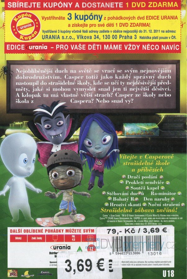 Nejoblíběnější duch na světě se vrací se svým nejnovějším dobrodružstvím. Casper totiž jako každý správný duch nastoupil do strašidelné školy, kde se učí ty nejděsivější předměty, jaké si mohou vymyslet snad jen ti největší děsivci. A kdopak tu má vlastně větší strach? Casper ze školy nebo škola z Caspera? Nebo snad vy? Vítejte v Casperově strašidelné škole a příbězích.
