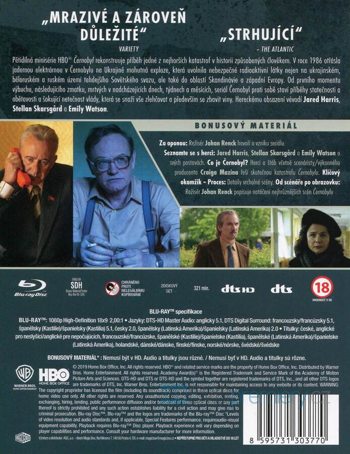 Pětidílná minisérie HBO Černobyl rekonstruuje příběh jedné z nejhorších katastrof v historii způsobených člověkem. Steelbook sběratelské balení. Český dabing.