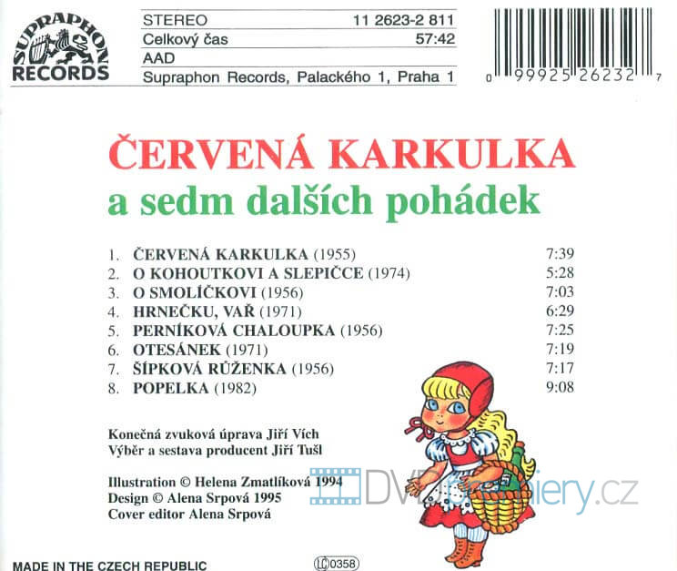 Červená Karkulka potkala vlka, Smolíček měl svého jelena se zlatým parožím, hrneček, co se mu řeklo "Vař", vařil, až kaše způsobila potopu, v perníkové chaloupce věznila ježibaba Jeníčka s Mařenkou, Otesánek snědl, na co přišel, Šípková Růženkamusela dostat od prince pusu, aby se probudila z věčného spánku a jak to bylo s Popelkou, určitě víte. Také tento titul nabízí osm nejznámějších pohádek, které dřív, když na to ještě měly čas, vyprávěly maminky a babičky. Teď jen vložíte do přehravače kazetu nebo cédéčko, zmáčknete tlačítko a - posloucháte.