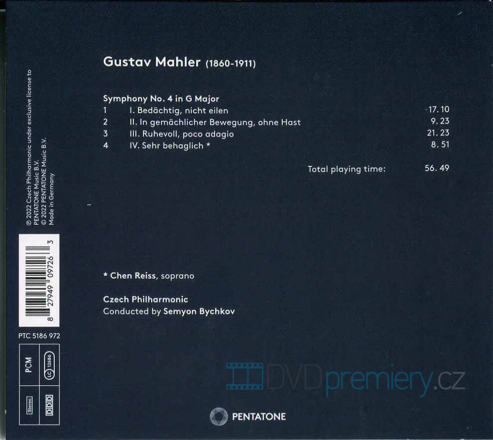 CD album Česká filharmonie, Chen Reiss, Semjon Byčkov - Mahler: Symphony No. 4 (2022). Česká filharmonie a její šéfdirigent a hudební ředitel Semjon Byčkov představují novou nahrávku Mahlerovy Čtvrté symfonie.