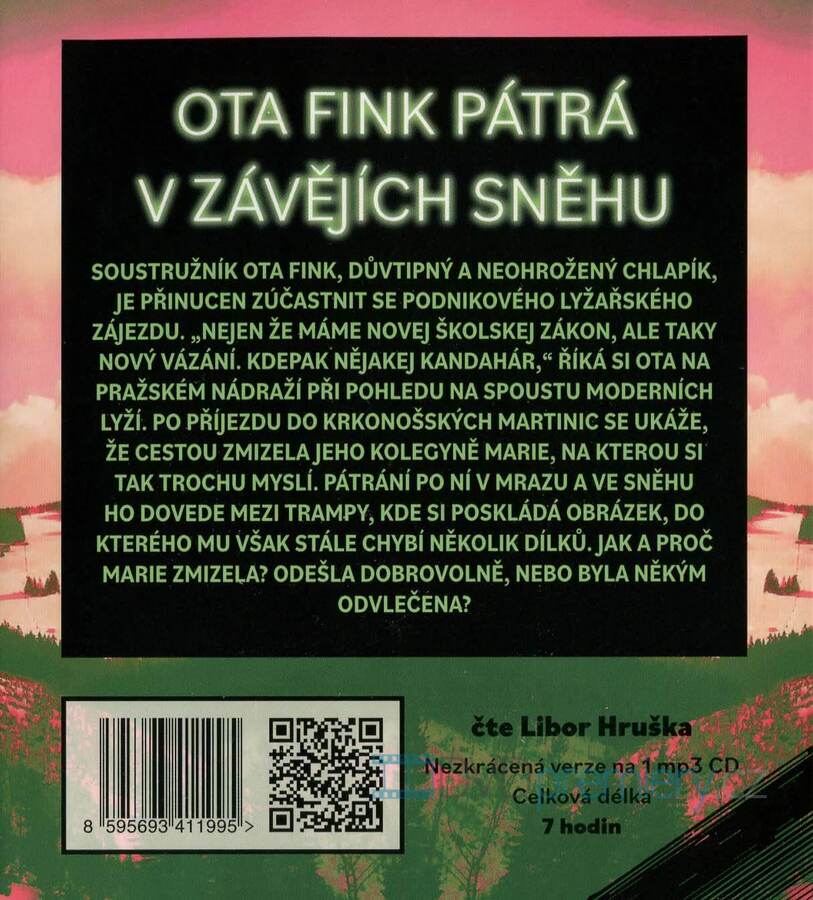 Audiokniha od autora: Jaroslav Velinský, čte: Libor Hruška. Délka nahrávky: 7 hodin. Kam zmizela Marie? Ota Fink rozplétá záhadu v Krkonoších. Detektivní příběh s jemným humorem a dobovou atmosférou.