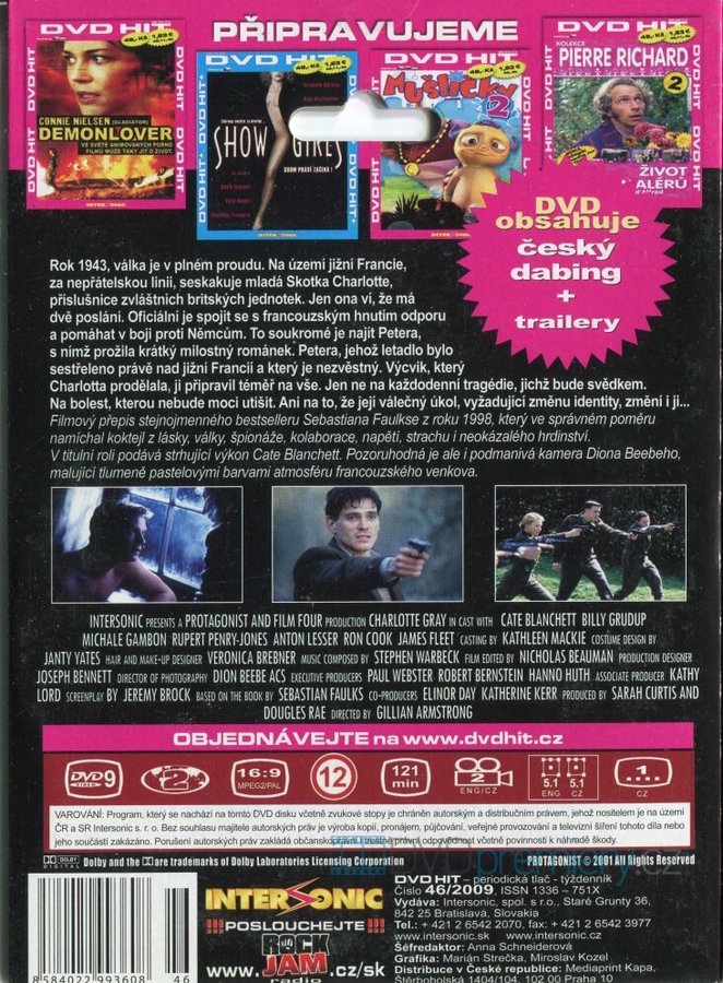 Příběh obyčejné ženy v neobyčejných podmínkách, jejíž život válka obrátila naruby. V titulní roli podává strhující výkon Cate Blanchett. Rok 1943, válka je v plném proudu. Na území jižní Francie, za nepřátelskou linii, seskakuje mladá Skotka Charlotte, příslušnice zvláštních britských jednotek. Jen ona ví, že má dvě poslání. Oficiální je spojit se s francouzským hnutím odporu a pomáhat v boji proti Němcům. To soukromé je najít Petera, s nímž prožila krátký milostný románek. Petera, jehož letadlo bylo sestřeleno právě nad jižní Francií a který je nezvěstný. Výcvik, který Charlotta prodělala, ji připravil téměř na vše. Jen ne na každodenní tragédie, jichž bude svědkem. Na bolest, kterou nebude moci utišit. Ani na to, že její válečný úkol, vyžadující změnu identity, změní i ji... Filmový přepis stejnojmenného bestselleru Sebastiana Faulkse z roku 1998, který ve správném poměru namíchal koktejl z lásky, války, špionáže, kolaborace, napětí, strachu i neokázalého hrdinství.