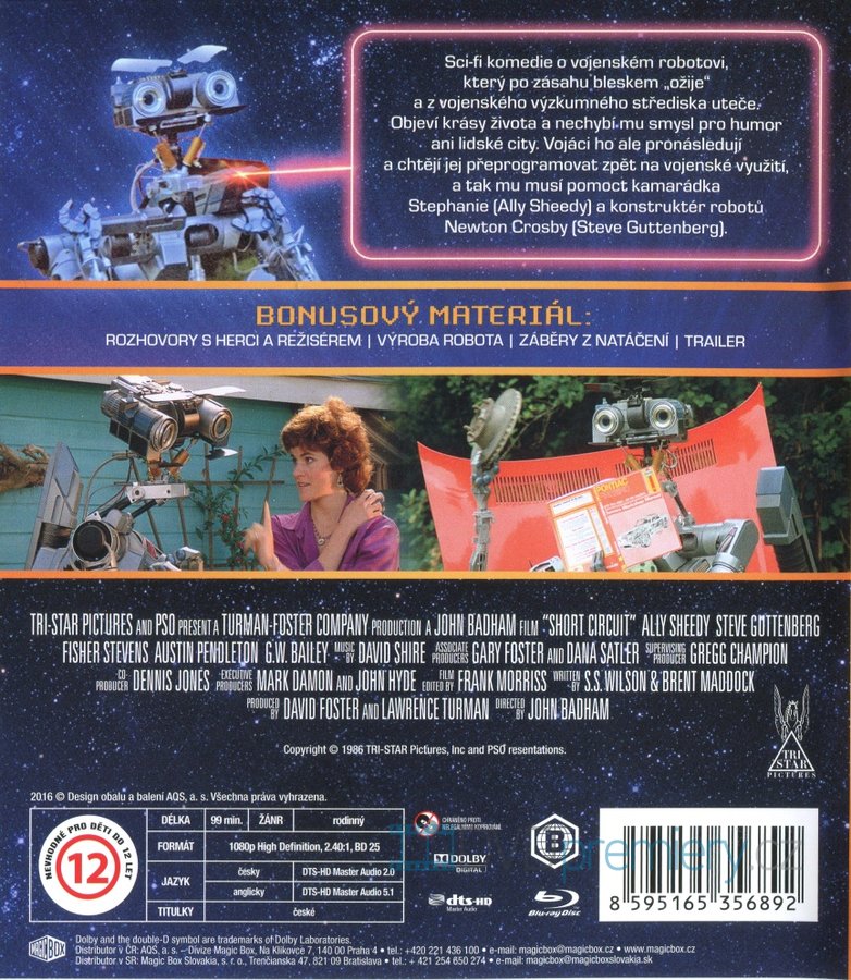 Blu-ray HD film Číslo 5 žije [1986]. Český dabing. České titulky. Dolby Digital. Sci-fi komedie o vojenském robotovi, který po zásahu bleskem "ožije" a z vojenského výzkumného střediska uteče.