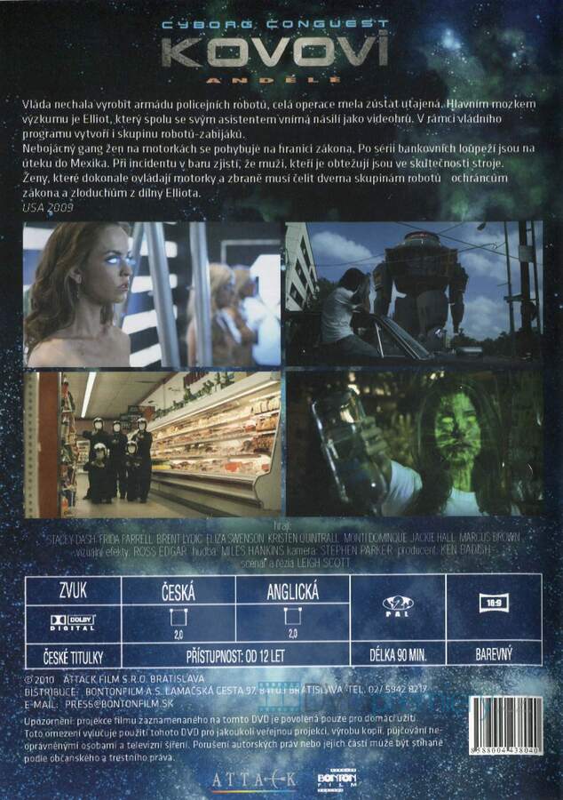 DVD film Cyborg Conquest: Kovoví andělé [2009]. Český dabing. České titulky. Dolby Digital. Drsné motorkářky na útěku před zákonem i vraždícími roboty. Akce, adrenalin a chaos bez hranic!