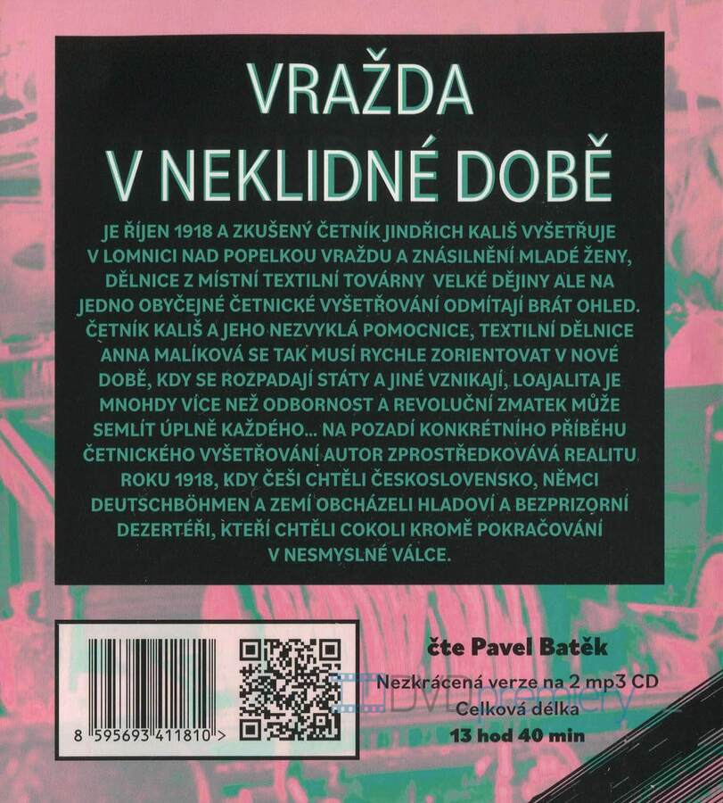 Audiokniha od autora: Tomáš Bandžuch, čte: Pavel Batěk. Délka nahrávky: 13 hodin, 39 minut. Vražda dělnice. Pád monarchie. Četník Kališ hledá vraha v chaosu října 1918.