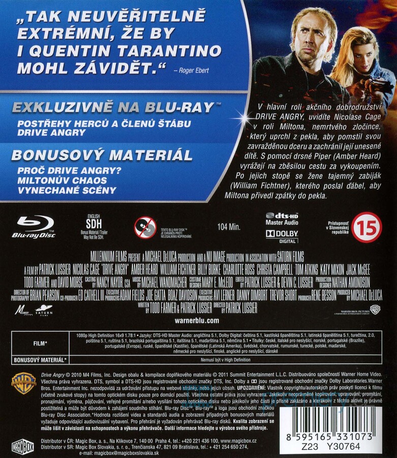 Blu-ray film Drive Angry HD [2011]. Český dabing. České titulky. Dolby Digital. V hlavní roli akčního dobrodružství Drive Angry, uvidíte Nicolase Cage.