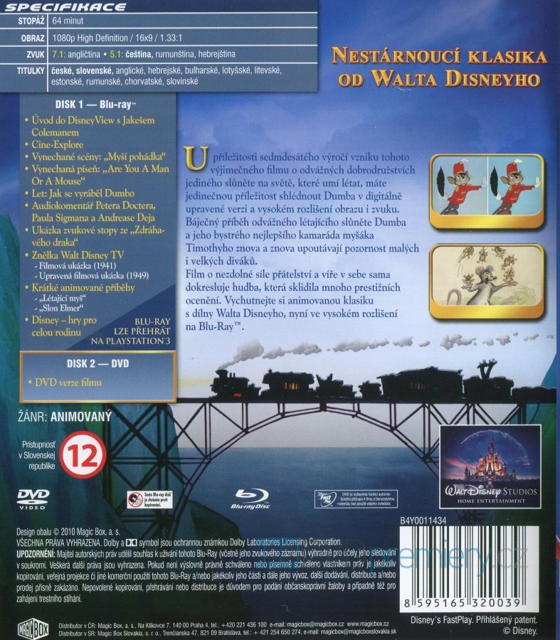 Za pomoci věrného přítele myšáka Timothyho, kouzelného pírka a spousty odvahy se z malého Dumba stává jediný létající slon na světě. Příběh plný dobrodružství, nezapomenutelné postavy a síla přátelství a sebedůvěry si znova a znova získávají pozornost malých i velkých diváků, a jistě se stane nedílnou součástí vaší domácí klasické filmové sbírky.