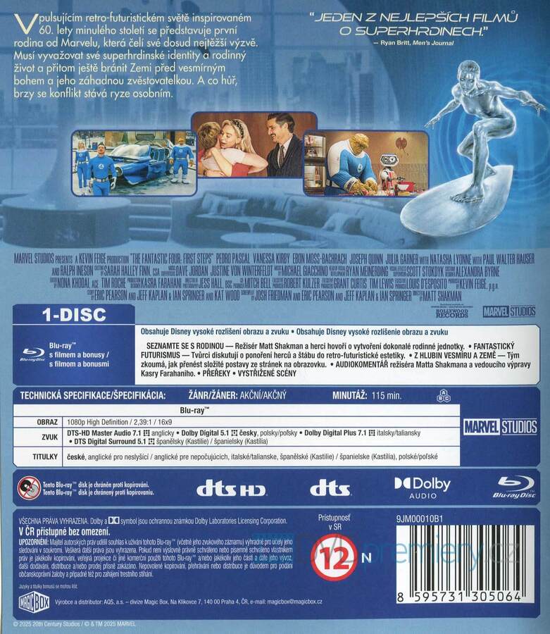 Blu-ray film Fantastická 4: První kroky HD [2025]. Český dabing. České titulky. Dolby Digital. Retro-futuristické dobrodružství! Fantastická 4 čelí Galactovi a Silver Surfer v boji o Zemi i rodinu.