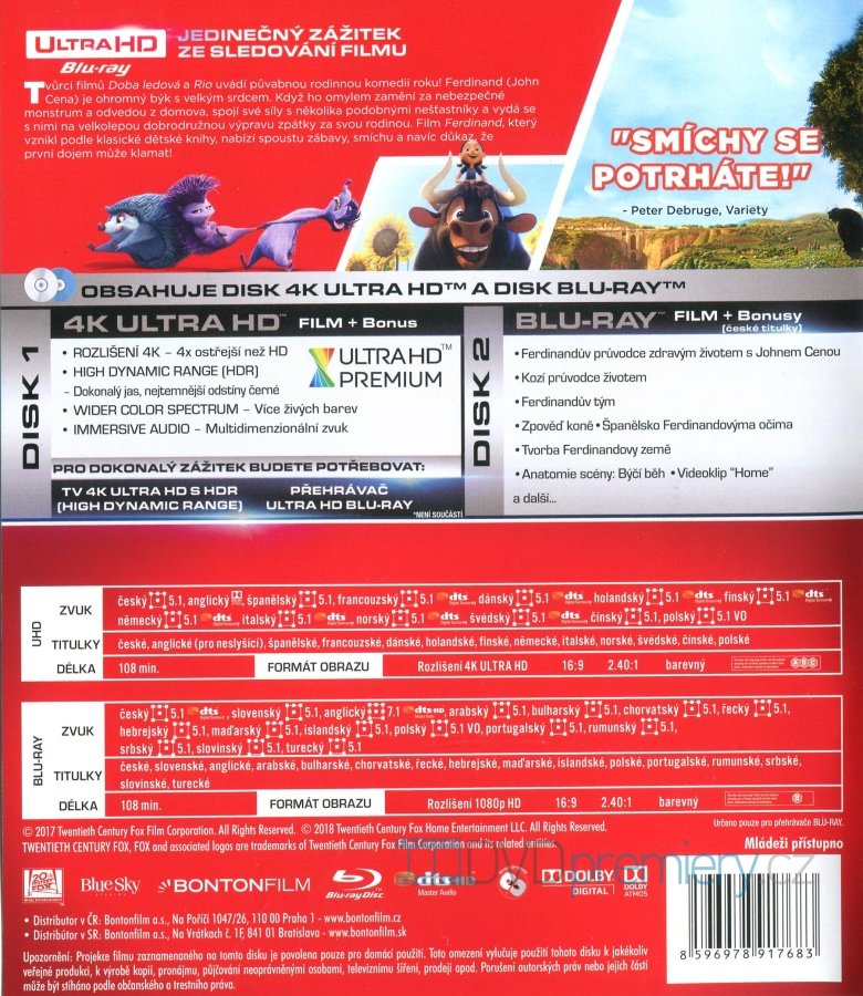 Užijte si jedinečný zážitek při sledování UHD BLU-RAY s filmem Ferdinand nyní 4x ostřejší než v rozlišení HD. Zdarma je také přiložen FULL HD BLU-RAY disk s filmem.