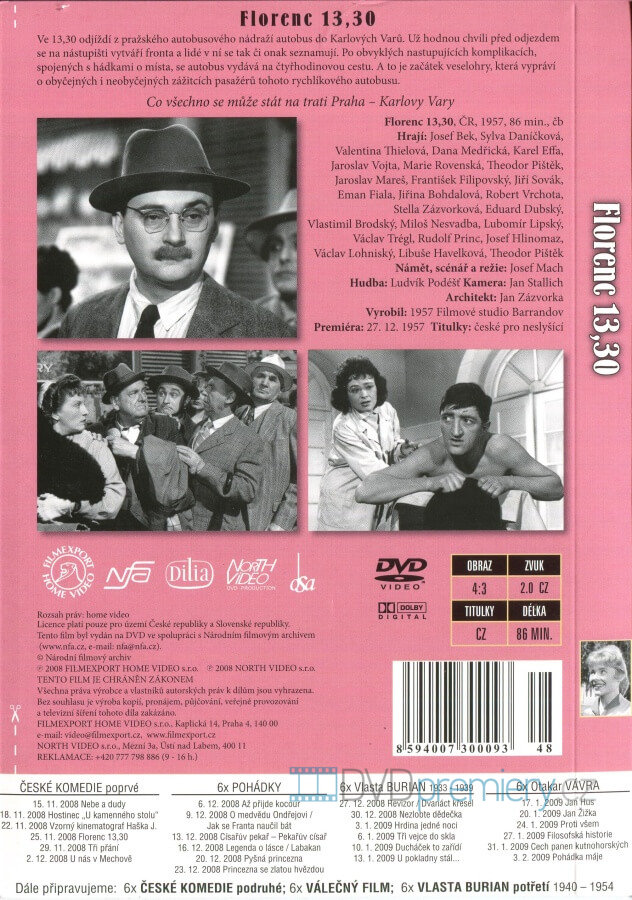 DVD film Florenc 13,30 [1957]. Československý film pro pamětníky. Dolby Digital. Papírový obal. Co všechno se může stát na trati Praha - Karlovy Vary.