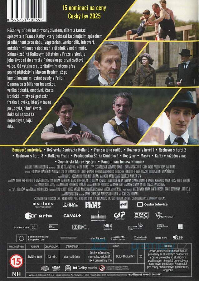 DVD film Franz [2025]. Český film. Český dabing. České titulky. Dolby Digital. Intimní portrét Franze Kafky. Vizionář, který předběhl dobu a definoval moderní úzkosti. Film plný fantazie a bolesti.