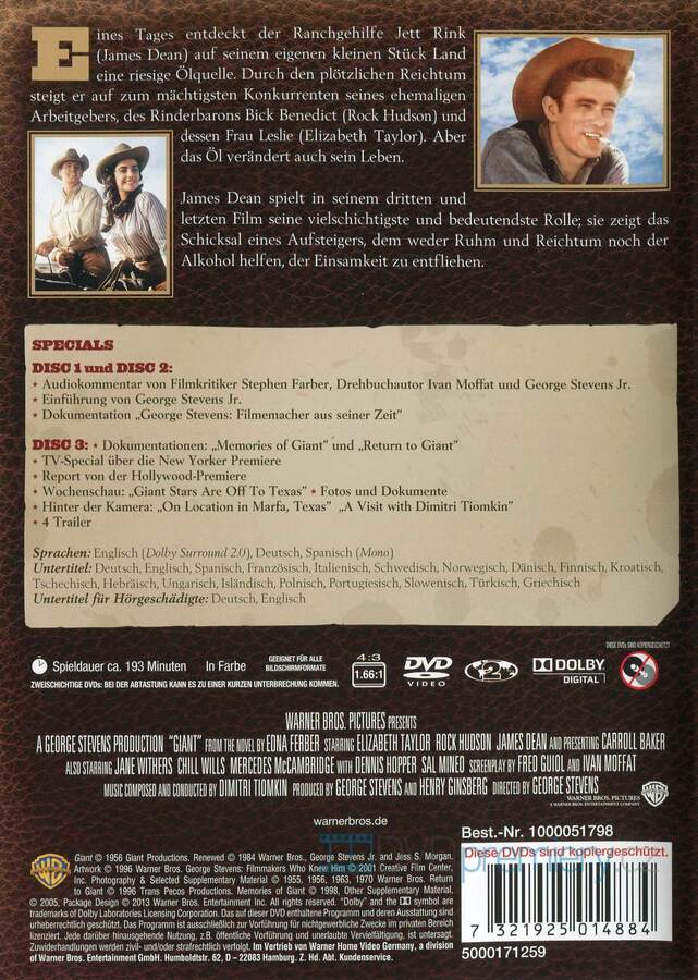 DVD film Gigant [1956]. České titulky. Dolby Digital. Dovoz. Z chudáka miliardářem. Ropa přináší moc, ne lásku. James Dean v nezapomenutelné roli osamělého magnáta.
