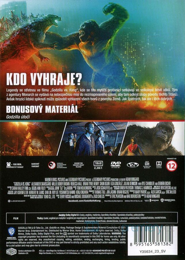 DVD film Godzilla vs. Kong [2021]. Český dabing. České titulky. Dolby Digital. Warner Bros. Pictures a Legendary Pictures uvádí dlouho očekávaný střet dvou legend „Godzilla vs. Kong“, další epické dobrodružství na DVD.