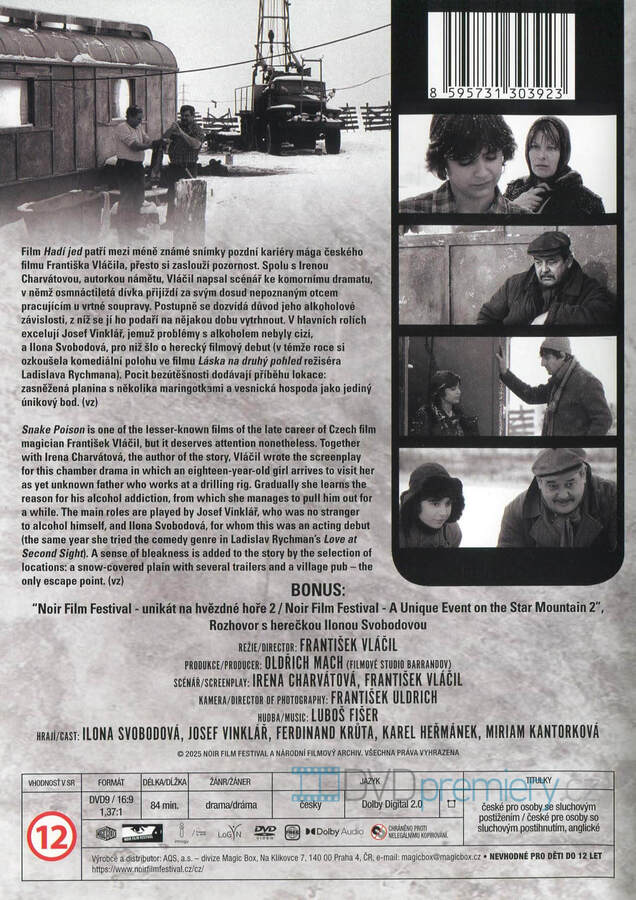 DVD film Hadí jed [1981]. Český film. Dolby Digital. Ani dcera nedokáže přemluvit Josefa Vinkláře, aby se zbavil své alkoholové vášně.