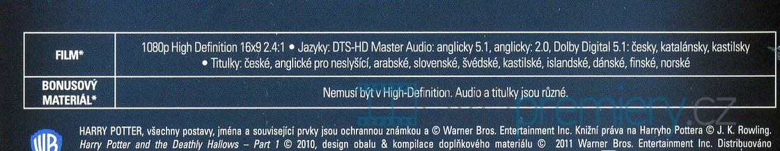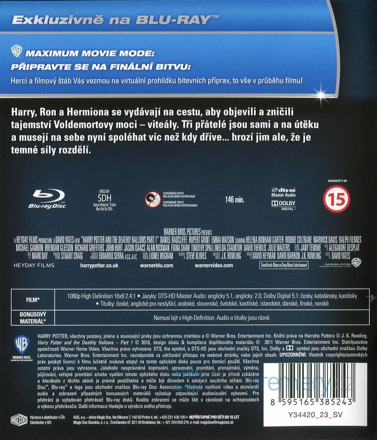 Blu-ray HD film Harry Potter a Relikvie smrti - 1. část [2010]. Český dabing. České titulky. Dolby Digital. „Harry Potter a Relikvie smrti“ je sedmým a posledním pokračováním dobrodružství Harryho Pottera.