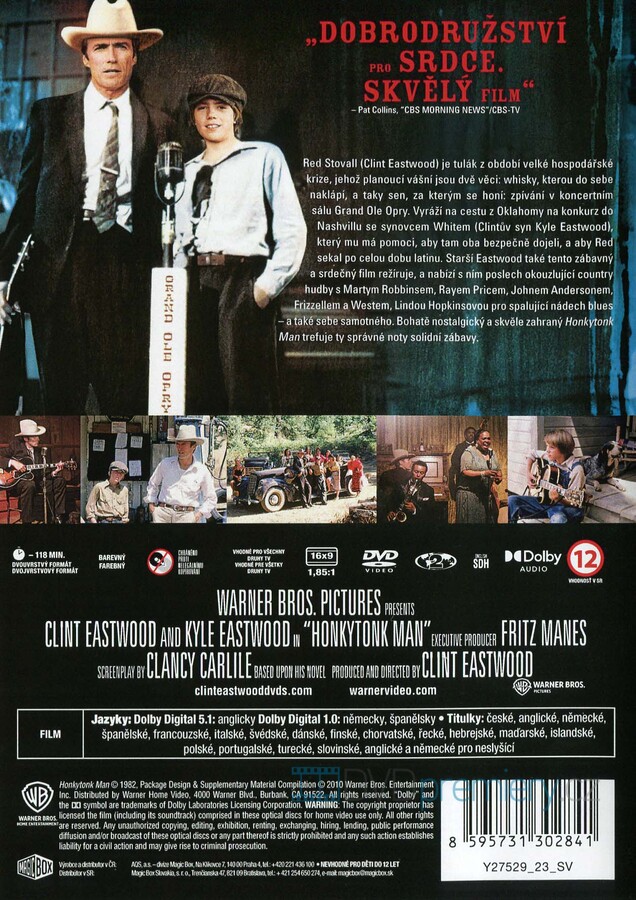 DVD film Honkytonk Man [1982]. České titulky. Dolby Digital. Clint Eastwood jako tulák a hudebník v dojemném příběhu z dob krize. Cesta za snem plná blues, dobrodružství a lidskosti, která odhalí jeho jinou tvář.