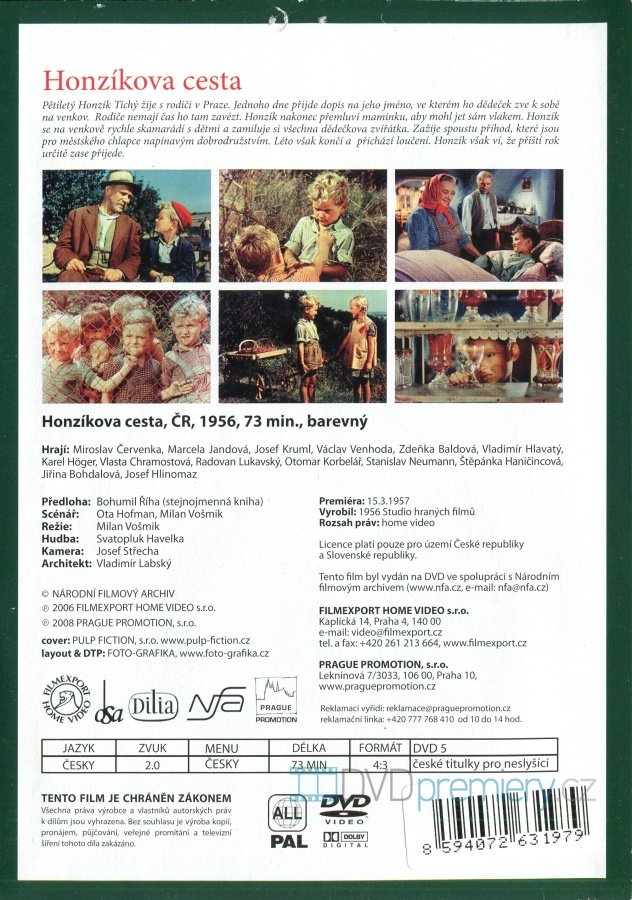 DVD film Honzíkova cesta [1956]. Československý film pro pamětníky. Dolby Digital. Papírový obal. Dobrodružná cesta malého Honzíka za dědečkem na venkov.