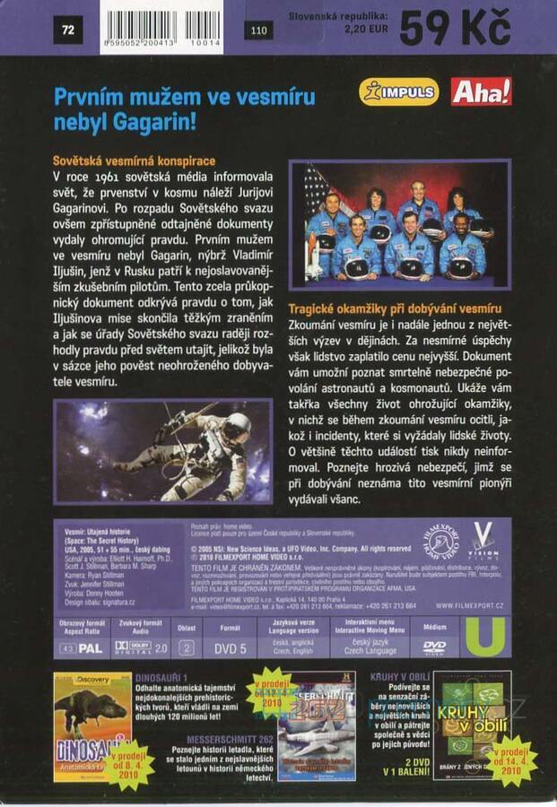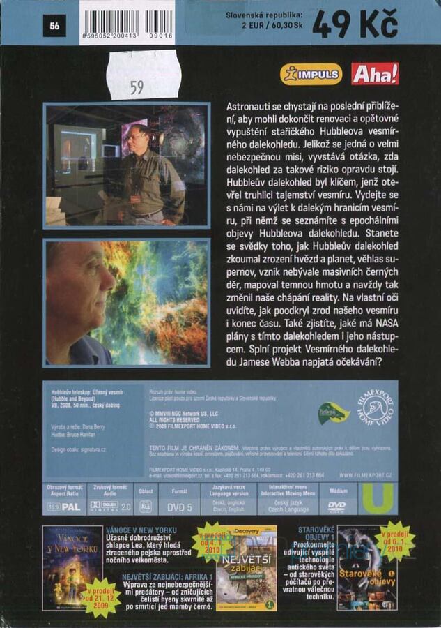 DVD kolekce obsahuje dokumentární filmy: Hubbleův teleskop, Vesmír: Utajená historie. 2 disky. Český dabing.