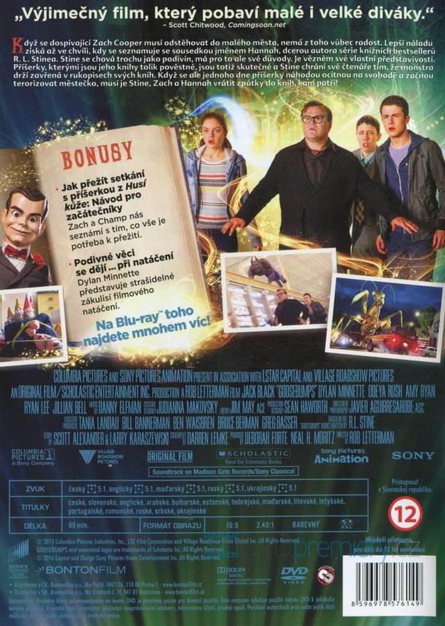 Bonusy: Jak přežít setkání s příšerkou z Husí kůže: Návod pro začátečníky Zach a Champ nás seznámí s tím, co vše je potřeba k přežití • Podivné věci se dějí … při natáčení Dylan Minnette představuje strašidelné zákulisí filmového natáčení