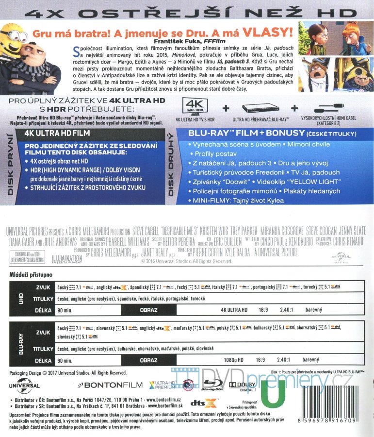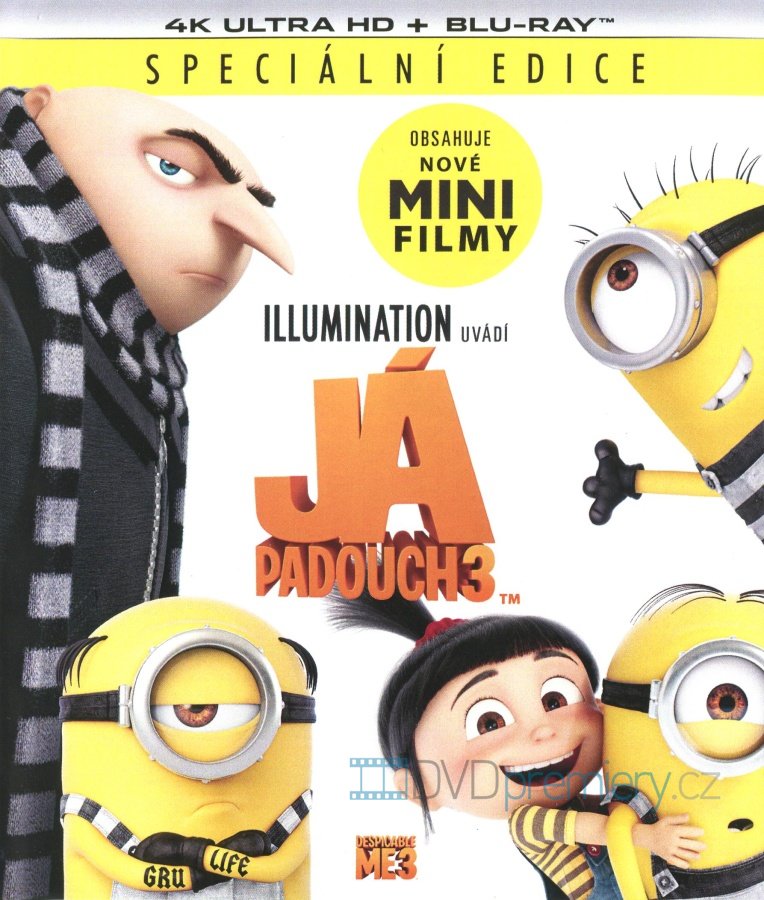 UHD BLU-RAY s filmem Já, padouch 3 nyní 4x ostřejší než v rozlišení HD. Zdarma je také přiložen FULL HD BLU-RAY disk s filmem.