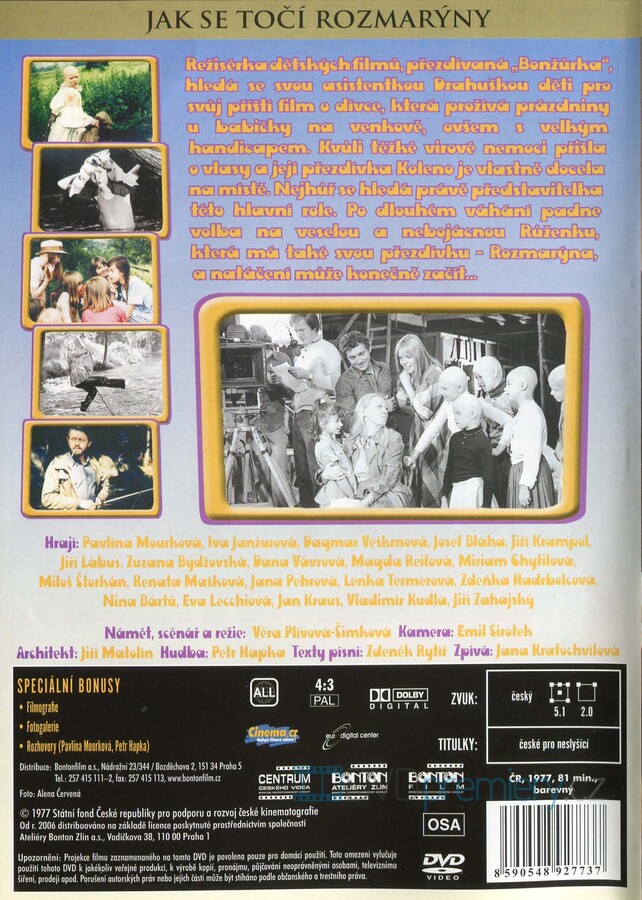 DVD film Jak se točí Rozmarýny [1977]. Český film. Dolby Digital. Natáčení dětského filmu plné nečekaných zvratů. Rozmarýna utíká za otcem a štáb zoufá. Příběh o filmu i životě.