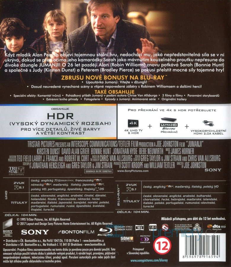 Užijte si jedinečný zážitek při sledování UHD BLU-RAY s filmem Jumanji nyní 4x ostřejší než v rozlišení HD. Zdarma je také přiložen FULL HD BLU-RAY disk s filmem.