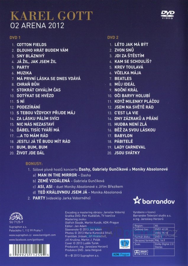 Koncertní 2DVD Karla Gotta plné skvělé muziky a dokonalé atmosféry! Téměř tříhodinový audiovizuální záznam přináší mnoho nezapomenutelných hitů Karla Gotta, ale také písně zčásti jen zřídka a někdy dokonce vůbec nikdy předtím nezpívané.