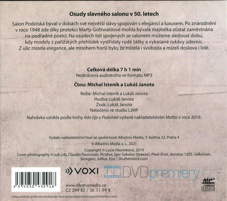 Audioknihu Kdo šije u Podolské napsala autorka: Lucie Hlavinková, čte: Michal Isteník, Lukáš Janota. Celková stopáž: 7 hodin, 1 minuta.