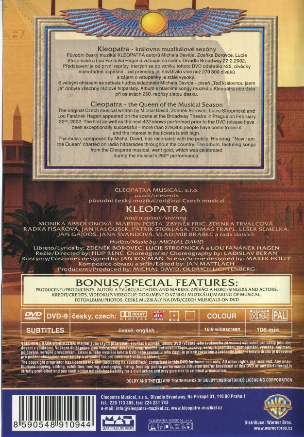 Bonusy: Producenti, autoři a tvůrci • Zpěváci a herci • Videoklip • Dokument o vzniku muzikálu • Fotoalbum