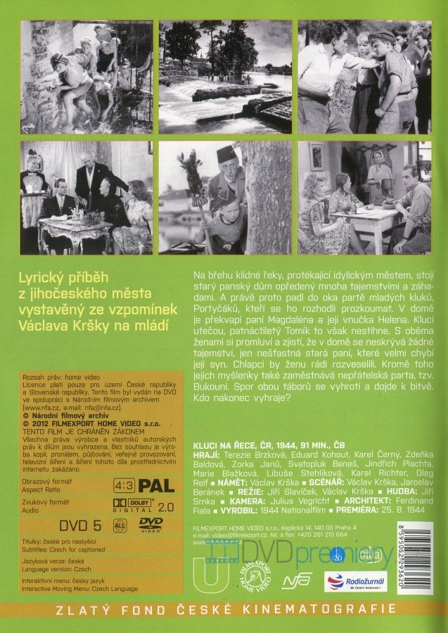 DVD film Kluci na řece [1944]. Československý film pro pamětníky. Dolby Digital. Lyrický příběh z jihočeského města vystavěný ze vzpomínek Václava Kršky na mládí.