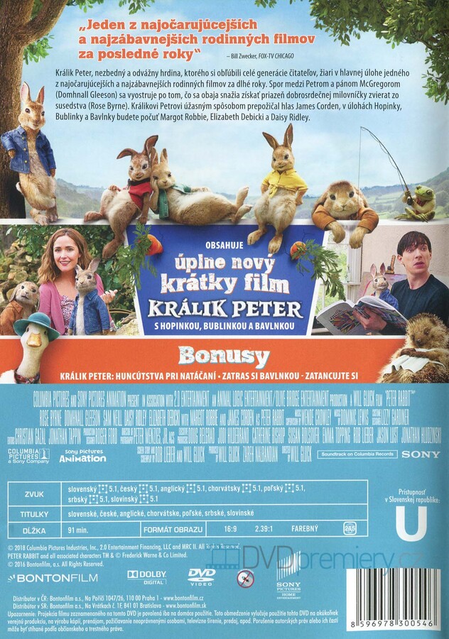 DVD film Králíček Petr [2018]. Český dabing. České titulky. Dolby Digital. Dovoz SK. Nezbedný králíček Petr bojuje s panem McGregorem o přízeň sousedky. Kouzelná rodinná komedie plná zábavy!