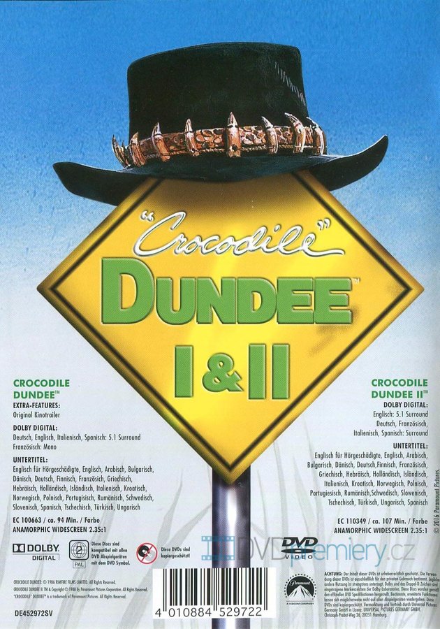 DVD kolekce obsahuje filmy: Krokodýl Dundee, Krokodýl Dundee 2. CZ titulky.