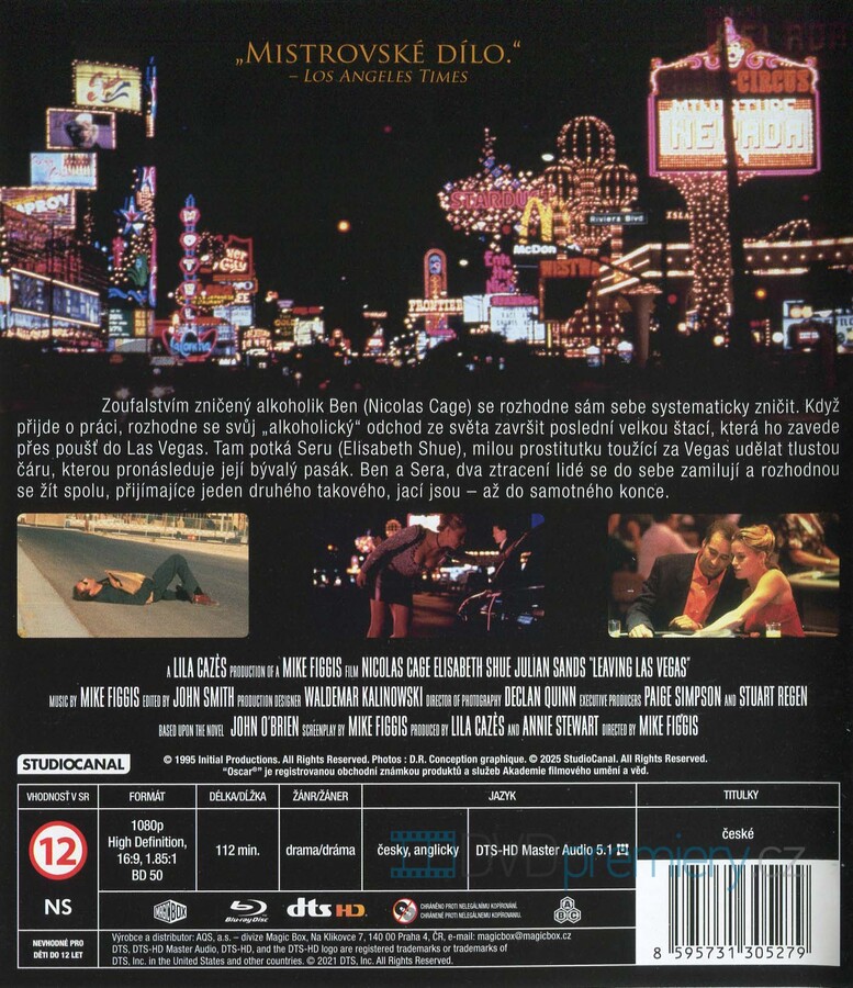 Blu-ray film Leaving Las Vegas HD [1995]. Český dabing. České titulky. Dolby Digital. Zkrachovalý scenárista Ben se rozhodne upít k smrti v Las Vegas. Může ho ještě zachránit láska k Seře?