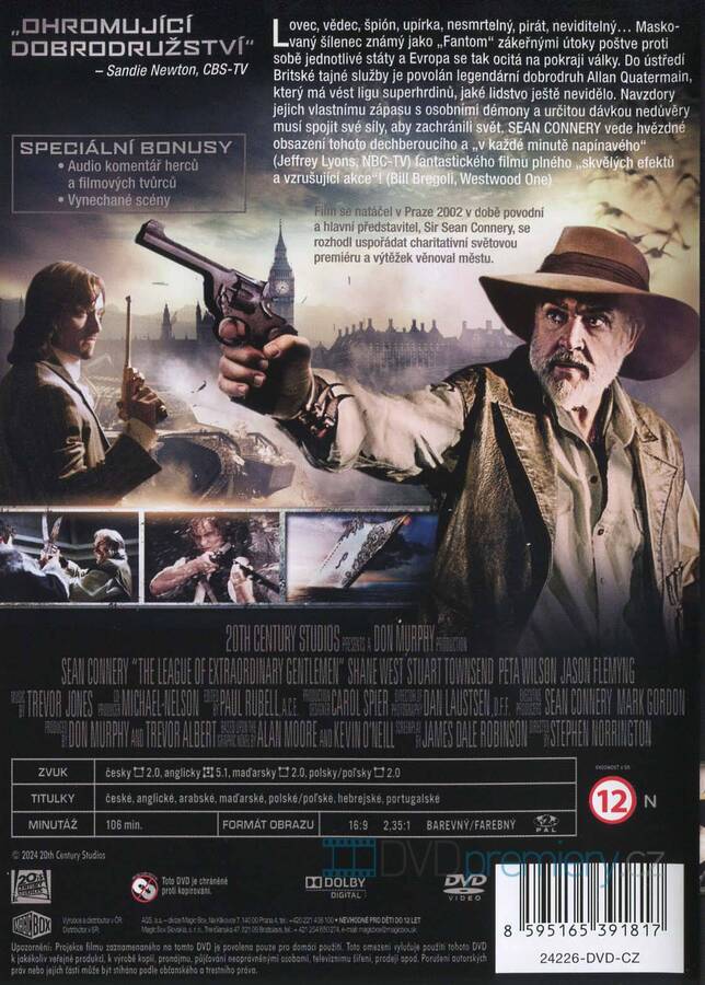 DVD film Liga výjimečných [2003]. Český dabing. České titulky. Dolby Digital. Hrají: Sean Connery. Fantom hrozí válkou, Quatermain vede LIGU superhrdinů k záchraně Benátek.