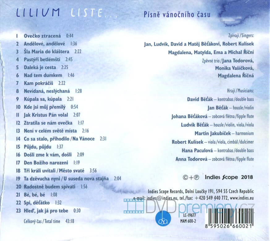 Pradávný mýtus o příchodu božského dítěte naplňujícího lidské touhy a naděje o Vánocích ožívá. Moravských lidových písní – i těch vánočních - je nespočet. Mnoho těch krásných a takřka neznámých ukrývají archivy, zpěvníky a staré kancionály, ale i hlubší vrstvy lidské paměti. Sdružení lidí Lilium Liste milujících lidovou píseň pochází z různých míst Moravy, každý hrál či zpíval nebo tančil v nějakém folklorním souboru či alespoň rodinné kapele. Hrají a zpívají si doma, těší je rodinné muzicírování a příležitostně rádi zahrají a zazpívají i pro přátele a známé. Lenka a Michal, Ema a Matylda z rodiny Říčných, Luděk, David a Matěj, Janek a Johanka z rodiny Běťákovy, Robin Kulísek, Jana a Anička Todorovy, Monika Vašíčková a Hanka Paculová, ti všichni si v různé sestavě zahráli a někdy též zazpívali. V několika starých písních se s harmoniem připojil Martin Jakubíček. Muzikanti hledají, ale i vzpomínají, objevují, vybírají písně, které se jim líbí a pocházejí převážně z Moravy a některé ze Slezska. Z ústního podání se dochovaly také vzácné motivy milostných koled, legend a duchovních zpěvů vánočního cyklu. Jejich zvláštní hudební dědictví spočívá jak v prostých melodiích, tak v kombinacích modálních a harmonických prvků.