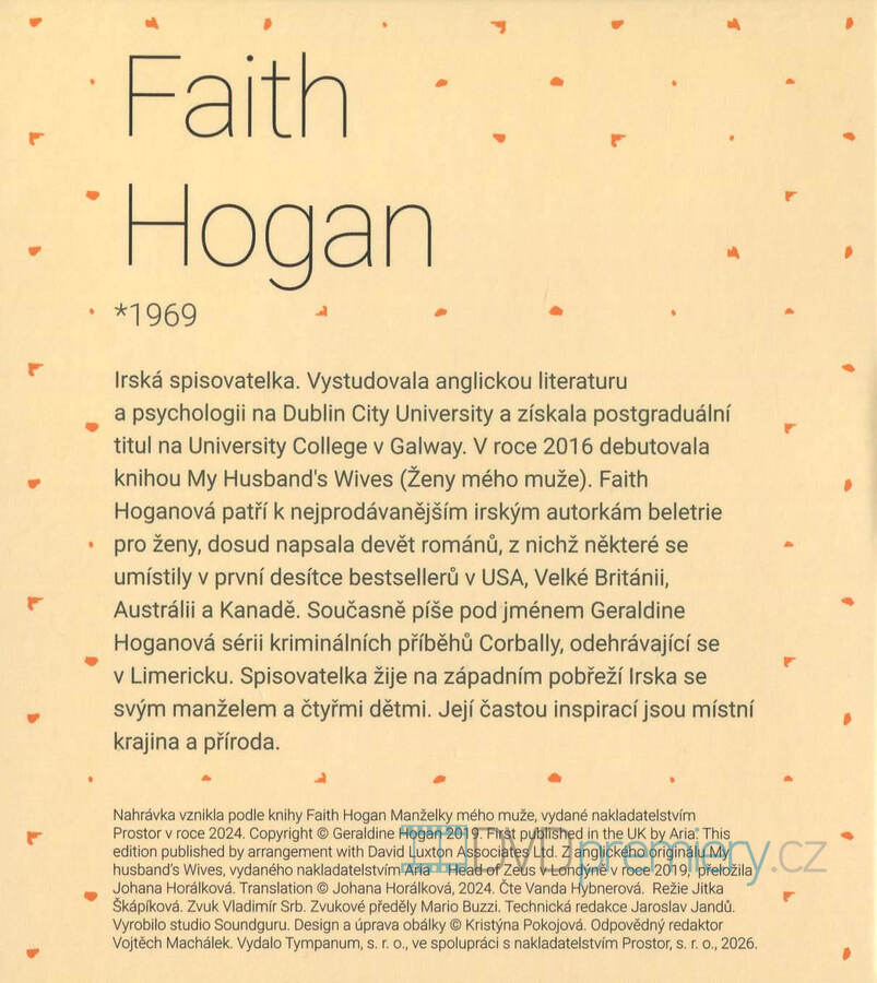 Audiokniha od autora: Faith Hogan, čte: Vanda Hybnerová. Délka nahrávky: 11 hodin, 35 minut. Evie věděla o jedné milence. Nevěděla o všech. Po manželově smrti se ženy setkají – a nenávist se změní v přátelství.