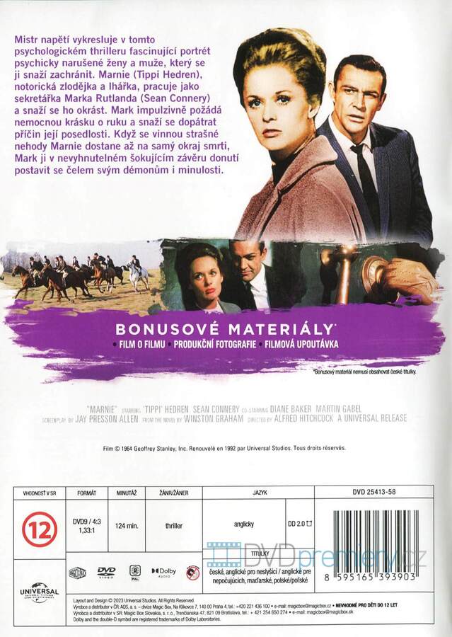 DVD film Marnie [1964]. České titulky. Dolby Digital. Režie: Alfred Hitchcock. Zlodějka Marnie ukrývá temné tajemství. Může ji zachránit láska, nebo ji zničí odhalení minulosti?