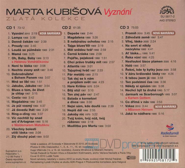 Rozsah tří cédéček v elegantním papírovém obalu dává vůbec poprvé šanci do sestavy písní zařadit opravdu všechny velké úspěchy Marty Kubišové z období od šedesátých let do současnosti. Podařilo se tam přidat také zásadní albové songy, zajímavý duet Jarmark ve Scarborough s Karlem Gottem, titulní píseň pro televizní seriál Zdivočelá země či pro film V žáru královské lásky, ale i nové letošní bonusy, v čele s působivě blues ovoněnou českou verzí hitu Eltona Johna.